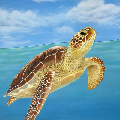 I've started a new collection of large scale wildlife illustrations (70 x 50cm), one of which includes this green sea turtle with coral reef in the foreground.