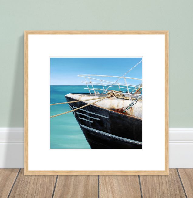 Cornish trawler at Penzance, painted in acrylic on board. Available as a signed limited edition print unframed, or open edition in a white or oak frame.